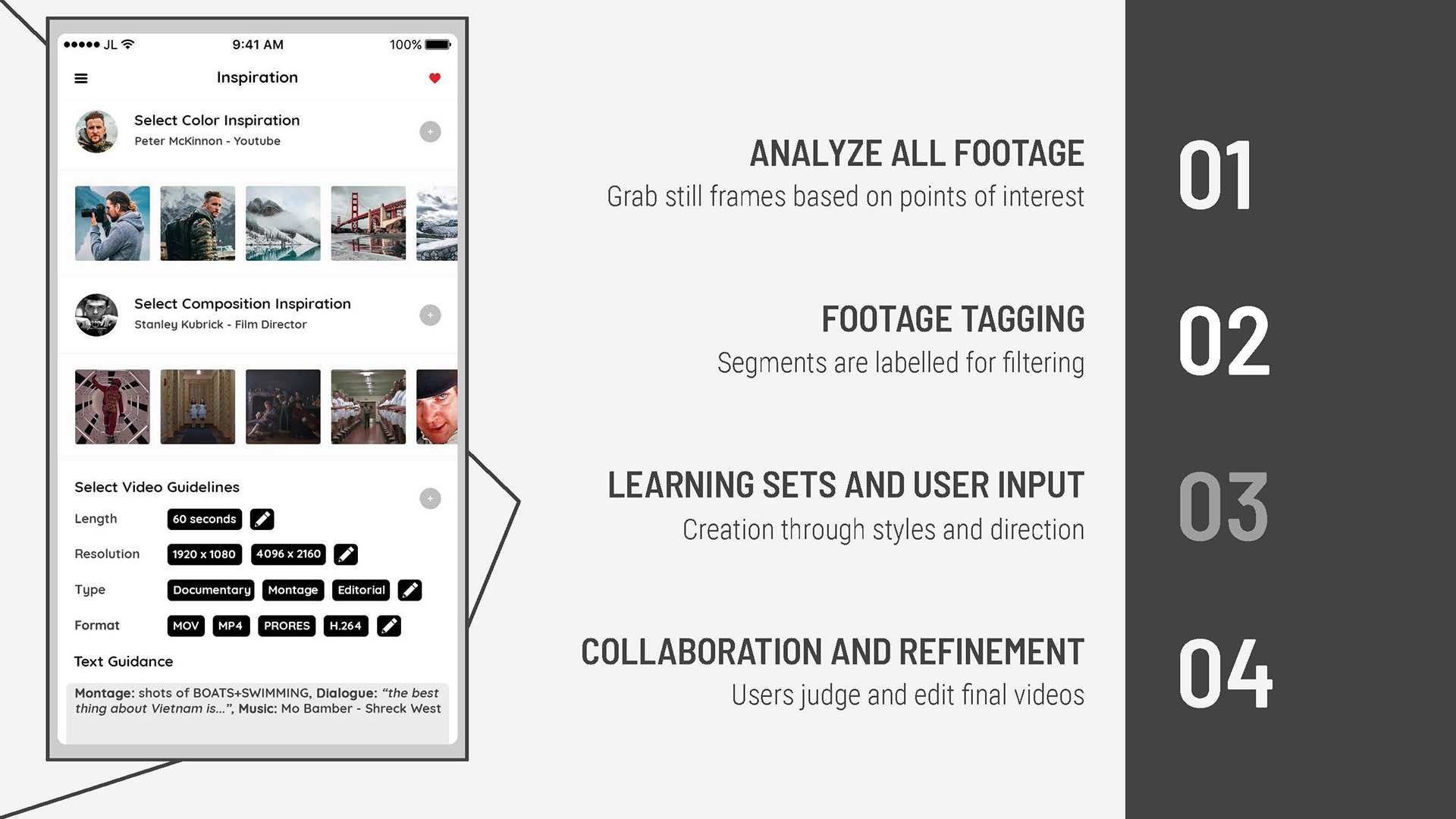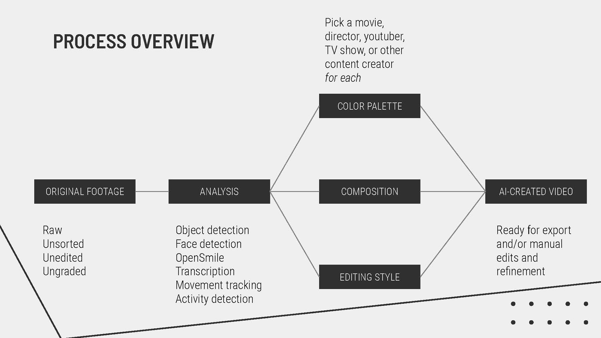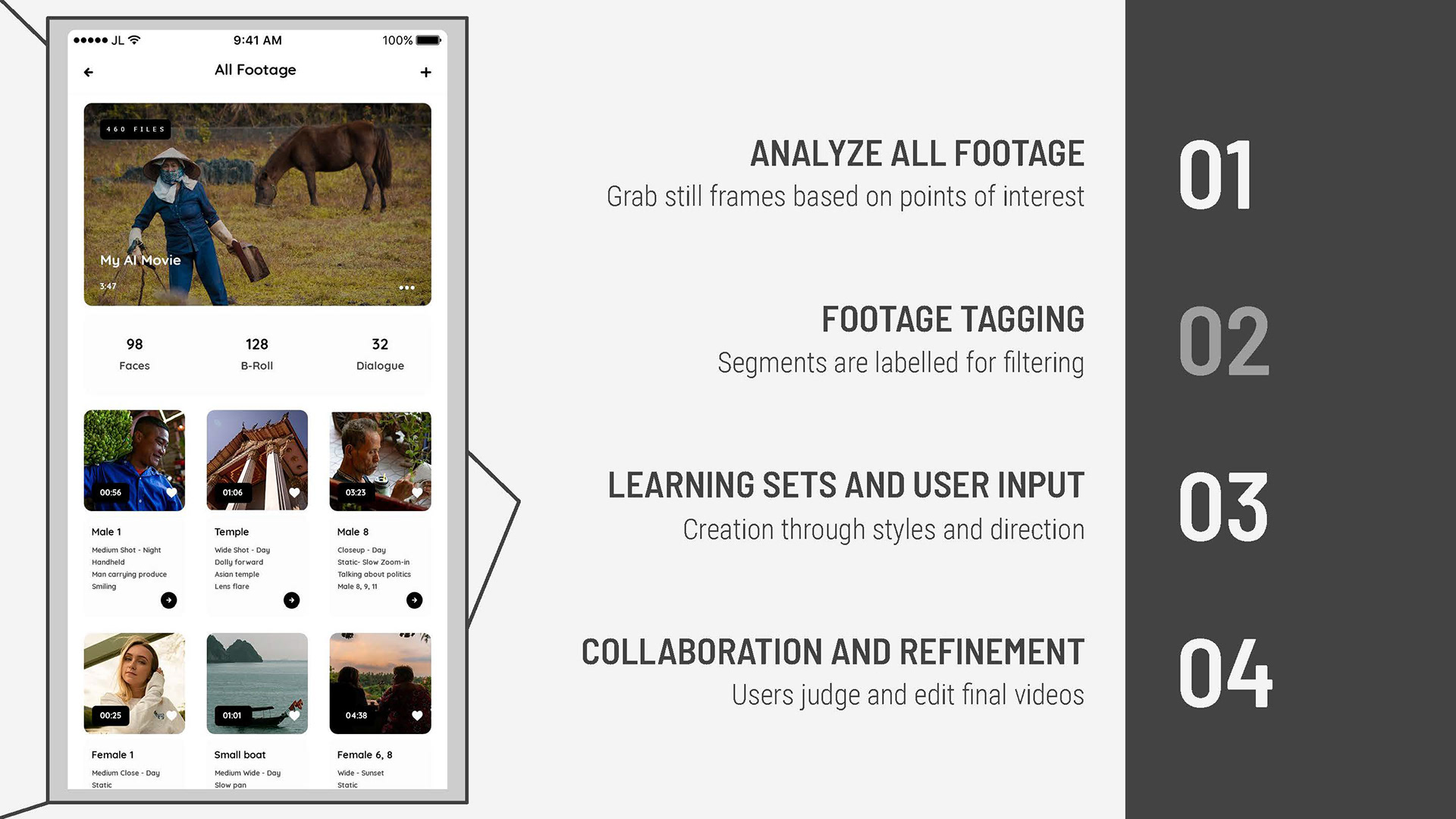 As my final project in Psychology, Creativity and AI, I designed an app concept that uses AI to edit videos with minimal user guidance.
