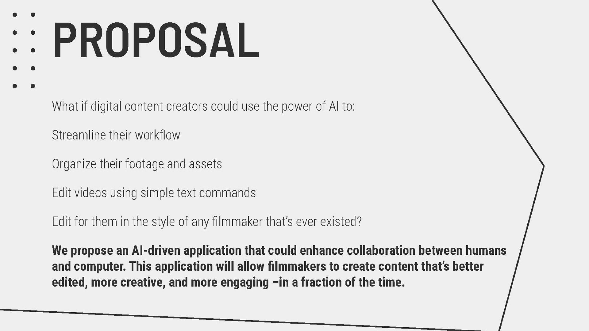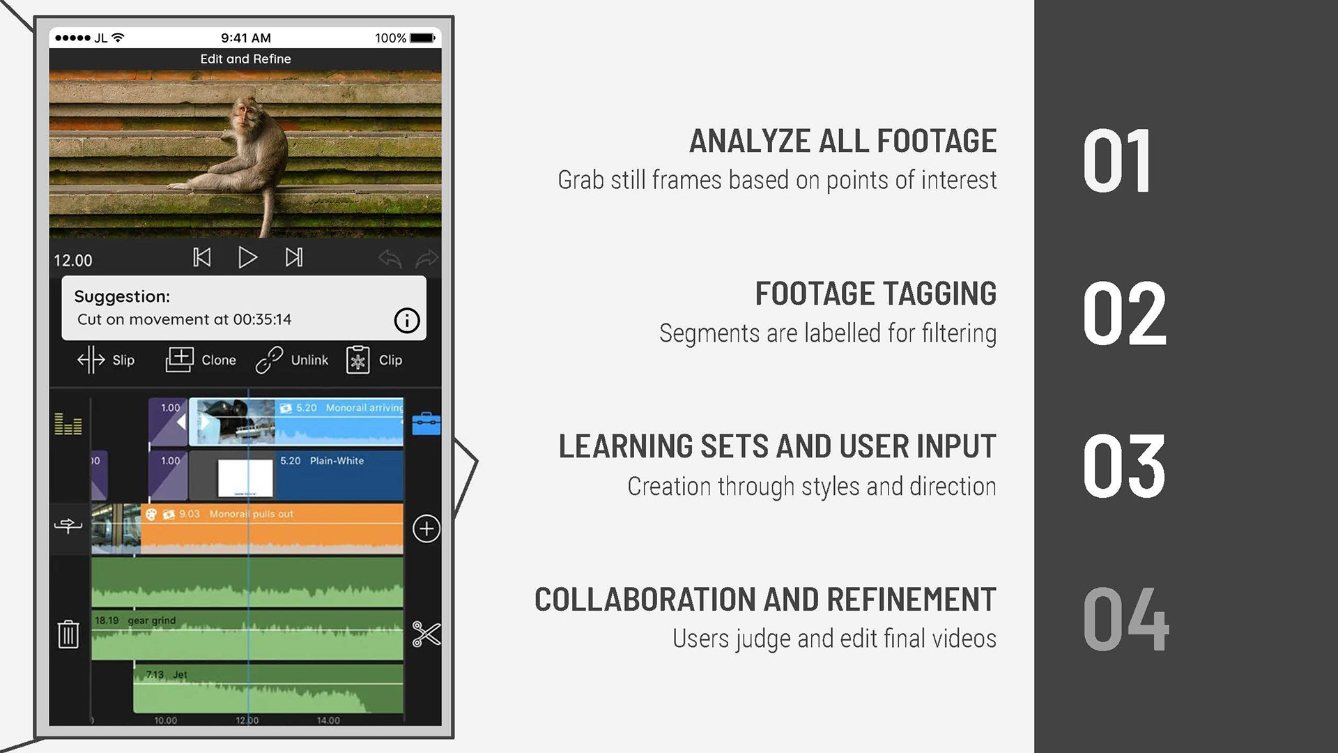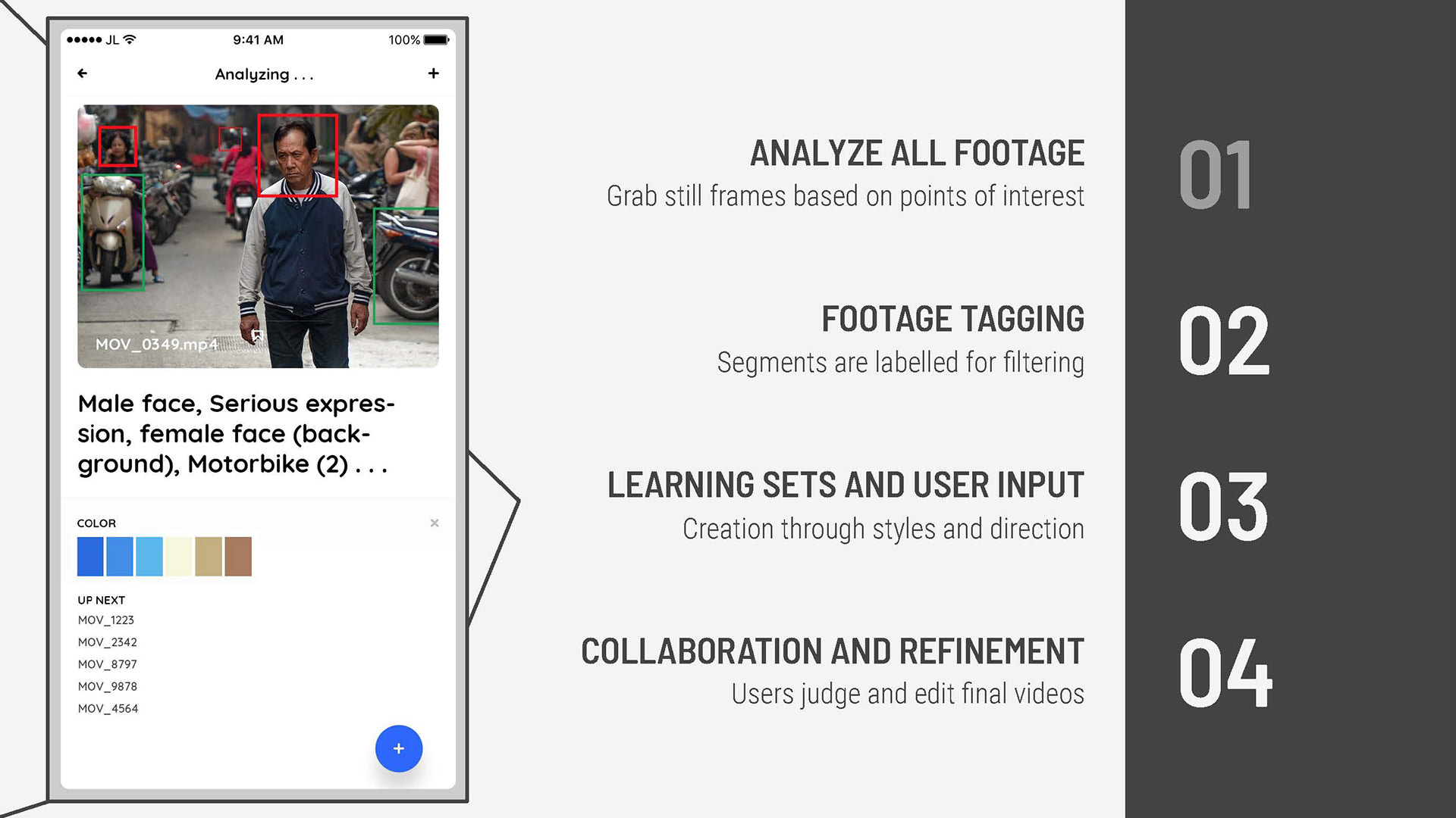 As my final project in Psychology, Creativity and AI, I designed an app concept that uses AI to edit videos with minimal user guidance.